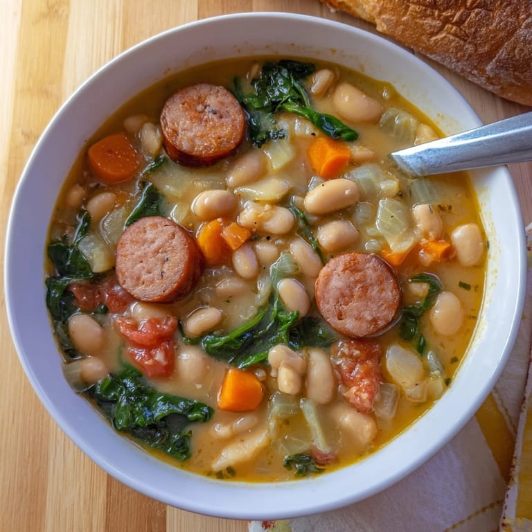 Save to Pins This Cheesy Sausage and White Bean Soup is the ultimate cozy meal for chilly nights and busy evenings. Packed with smoky sausage, creamy beans, veggies, and a generous cheesy swirl at the end, it's the kind of dinner that satisfies every craving and leaves just enough for a next-day lunch.