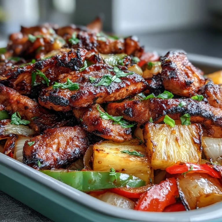 I made this for my friend's casual game night, and she kept going back to the pan instead of sitting down, picking at the caramelized edges of the pineapple between rounds. That's when I knew I'd stumbled onto something that works—not because it's complicated or impressive, but because it's genuinely delicious and feels like you put in effort when really you just tossed everything into a bowl and let the oven do the heavy lifting.