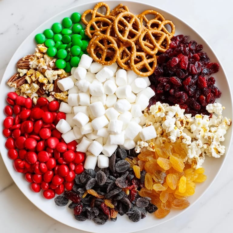 This snack board combines the sweetness of festive candies and dried fruits with the satisfying crunch of pretzels, nuts, and cheese crackers. Its versatility means you can easily adapt it to your favorite snacks or dietary needs, making it a joyful treat everyone can enjoy throughout the holidays.