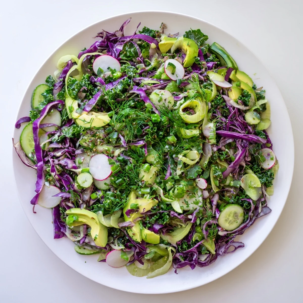 Save to Pins I threw this salad together on a sluggish Sunday afternoon when I felt like my body was craving something alive. The fridge had a half cabbage, some limp kale, and a cucumber I'd forgotten about. I started shredding and slicing, and the colors alone woke me up. By the time I whisked the dressing, the kitchen smelled like a garden after rain.