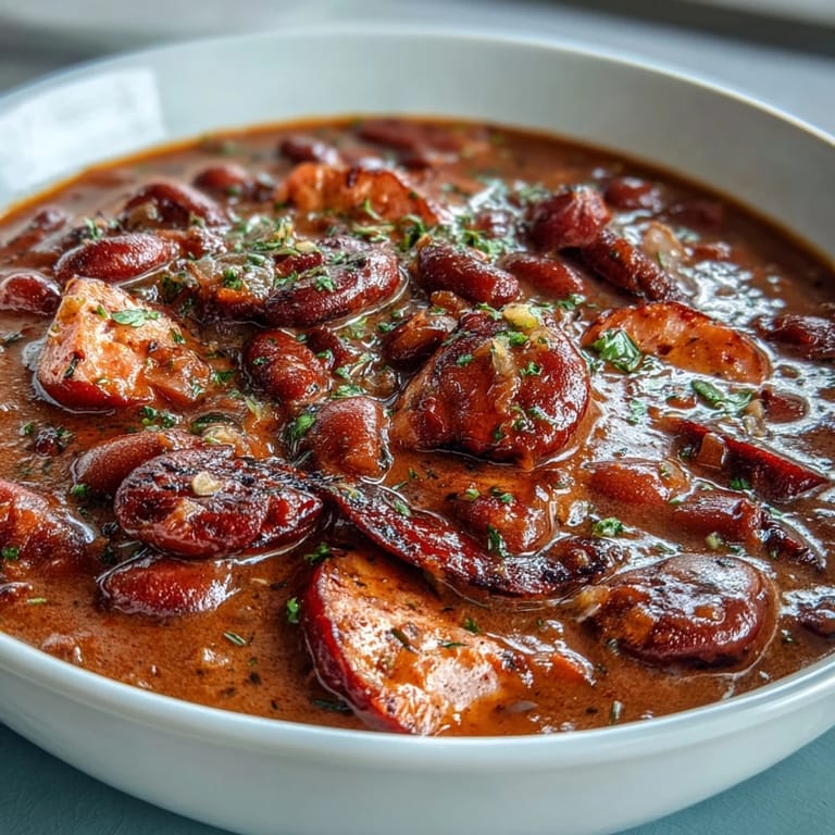 Save to Pins A hearty, flavorful soup inspired by traditional Cajun Monday suppers, featuring smoky ham, creamy red beans, and classic Creole seasonings. This dish provides a rich, comforting meal that is both filling and deeply satisfying.