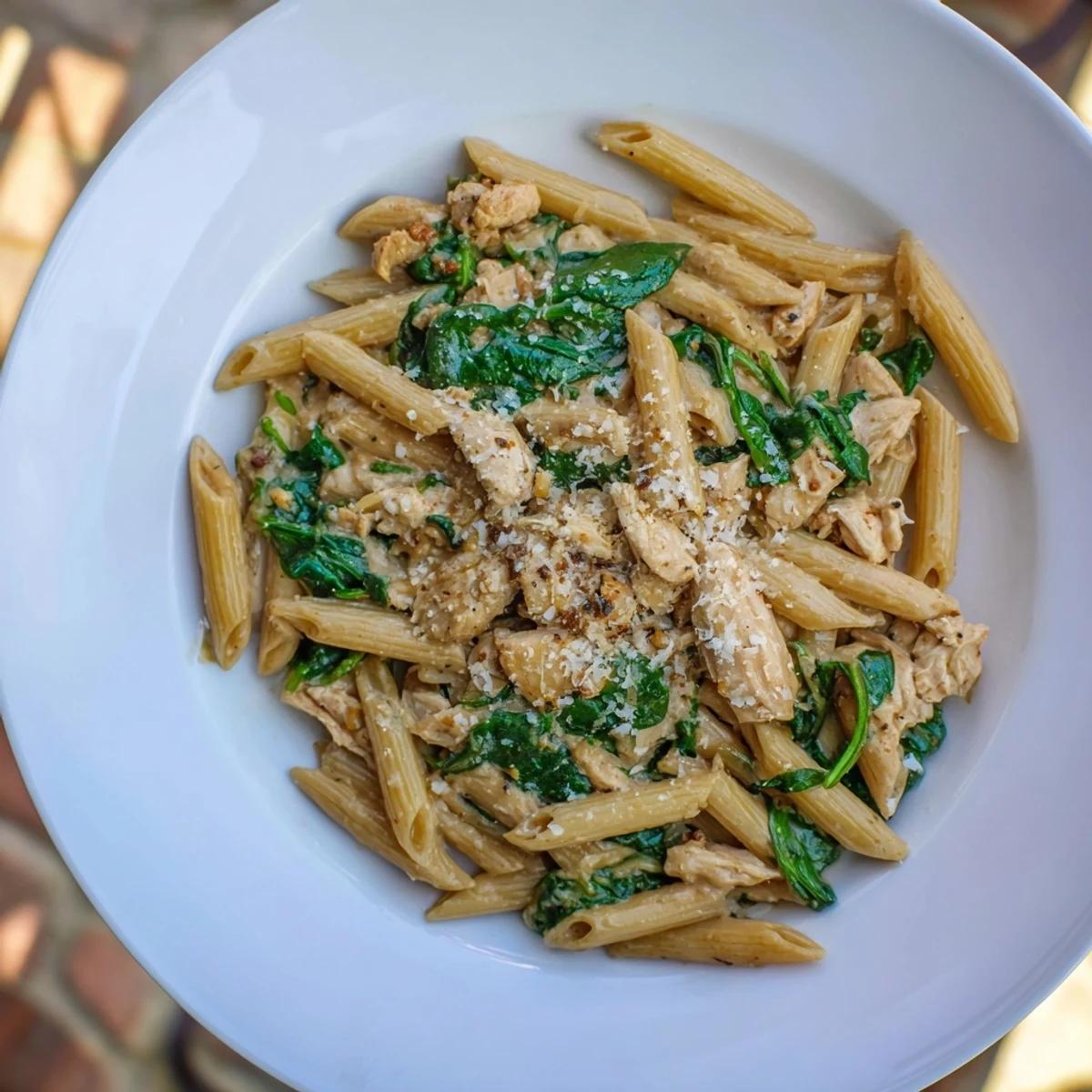 Save to Pins I threw this together on a Tuesday when the fridge looked bare and my energy was lower. One pot sat on the stove, chicken sizzling beside uncooked pasta, and I thought maybe I'd just invented chaos. Twenty minutes later, I was twirling creamy, spinach-flecked penne and wondering why I'd ever dirtied more than one dish.