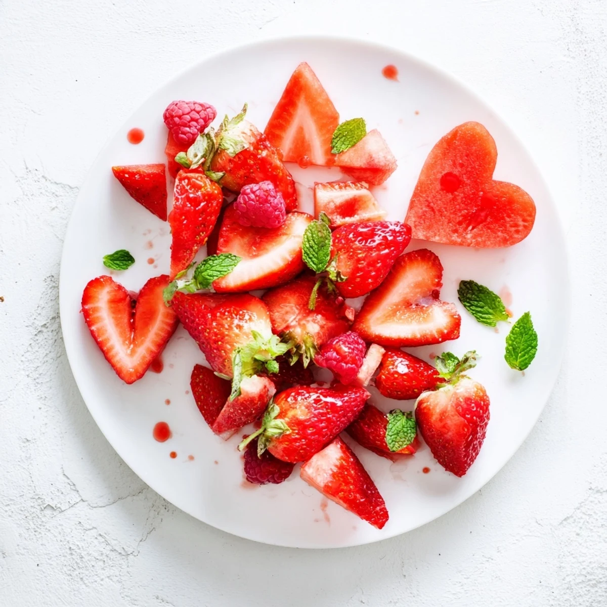 Use a small heart-shaped cookie cutter to press into halved strawberries and watermelon slices, creating consistent heart shapes.