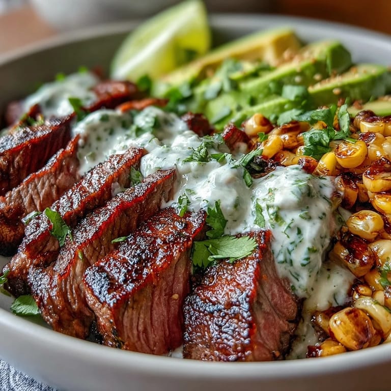 Save to Pins Summer evenings on the back porch taught me that sometimes dinner doesn't need a table. I'd pile everything into wide bowls, the kind you can hold in one hand while the fireflies start blinking. The cilantro cream would pool around the edges, catching bits of charred corn and steak juice, and nobody minded the drips. It was messy, bright, and tasted like the best kind of lazy warmth.